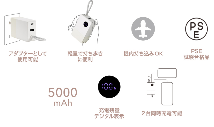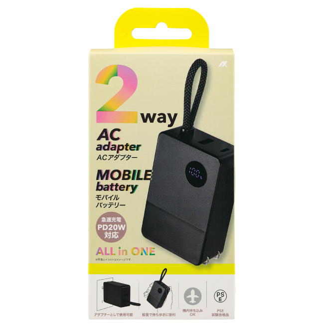 仕様 製品サイズ:約W52.2×H86×D27.2mm 製品重量:147g 内蔵電池:リチウムバッテリー(Li-ion21700) 電池容量:5000mAh 本体満充電時間:1.5時間 素材:ABS 入力:AC100-240V~50/60Hz 0.6A Max 出力:Type-C:5V=3A 9V=2.22A 12V=1.67A(20W Max) 出力:USB-A:5V=3A 9V=2A 12V=1.5A(18W Max)